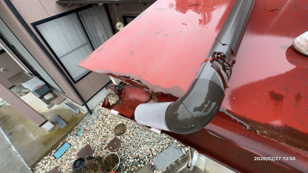 軒先自体が腐食しているため長期間の耐久性は期待できません。