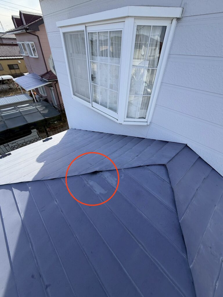 屋根の頂上部分である「棟」の板金の加工(掴み込み)が少し甘くなっており、そこが雨水の侵入口となっていました。