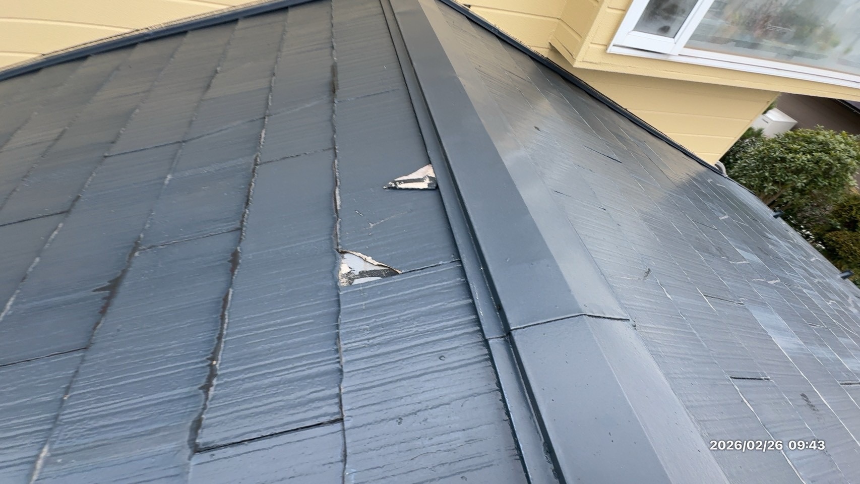 実際に屋根の状態を確認したところ、スレート屋根全体にわたり劣化が進行していました。