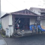 実際にお伺いすると、敷地内に割れたスレート屋根材が落下している状態。
