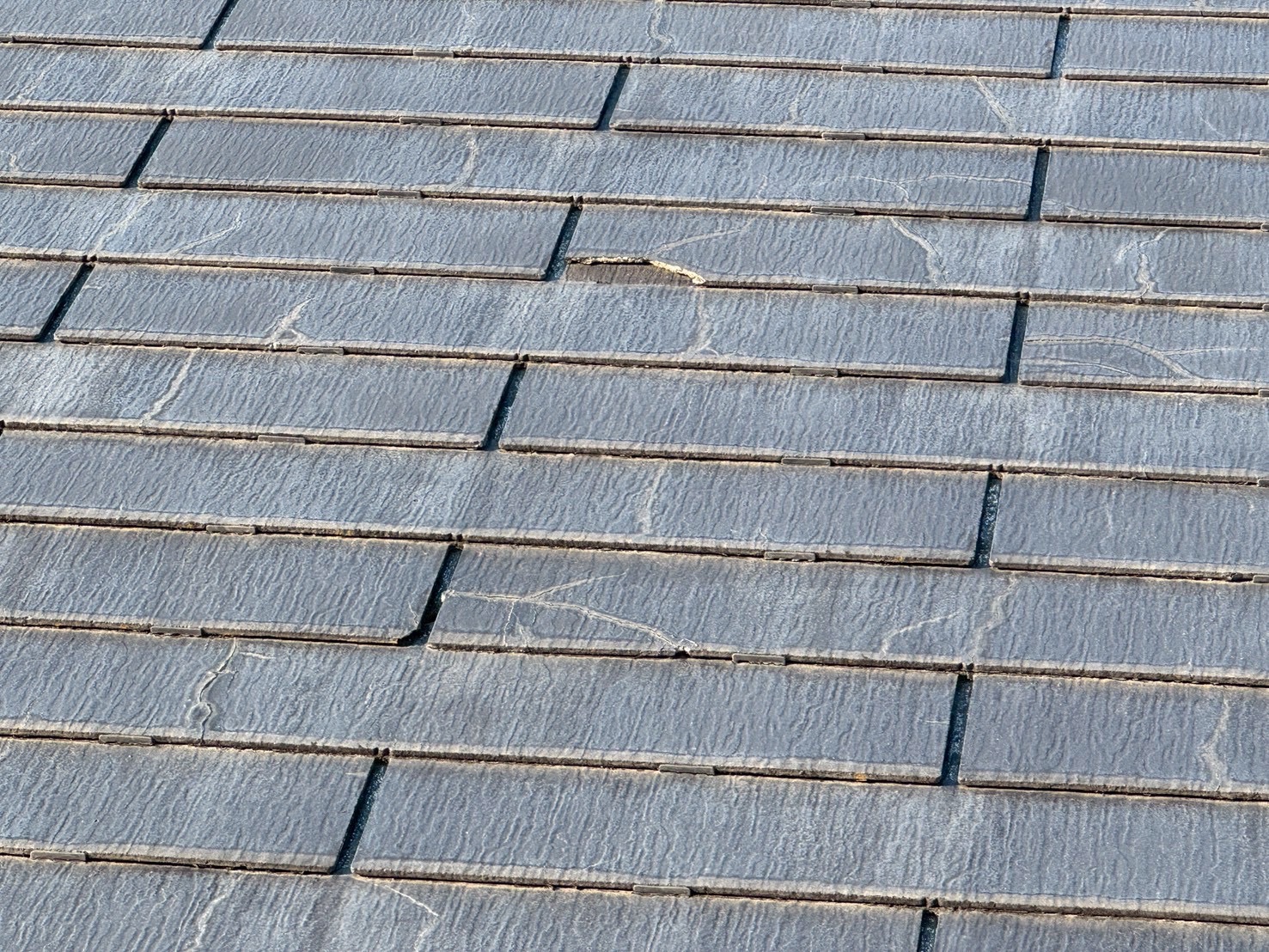 スレート屋根材に複数の亀裂や破損が見られました。