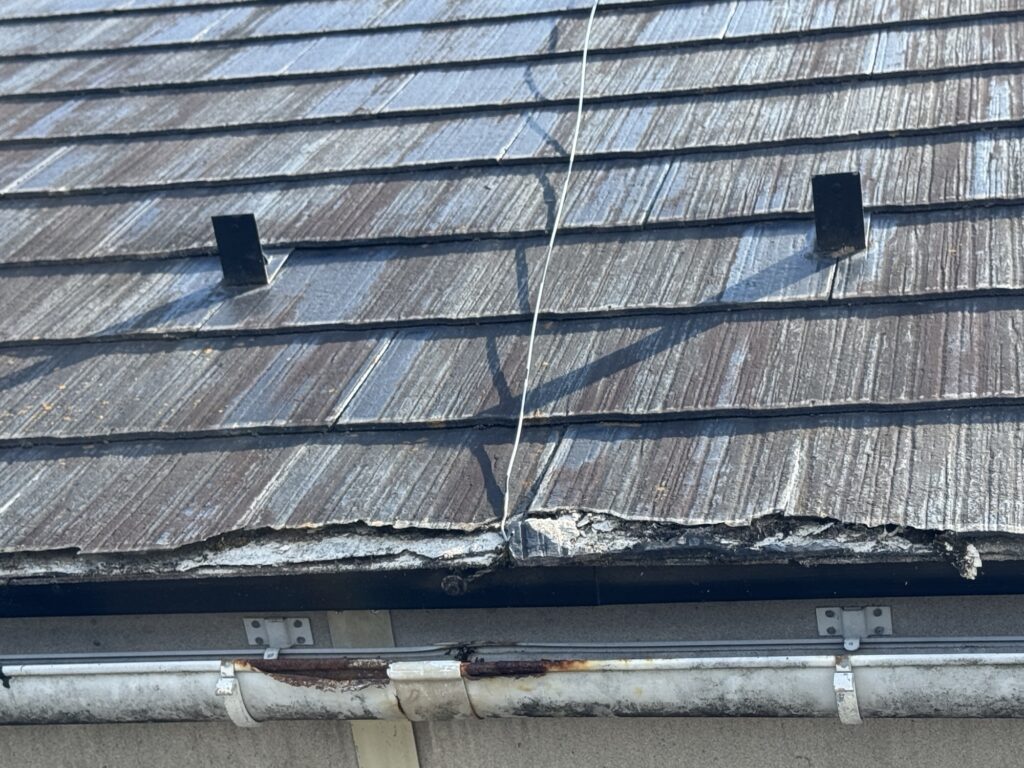 現地調査の結果、スレート屋根は全体的に劣化が進行していました。