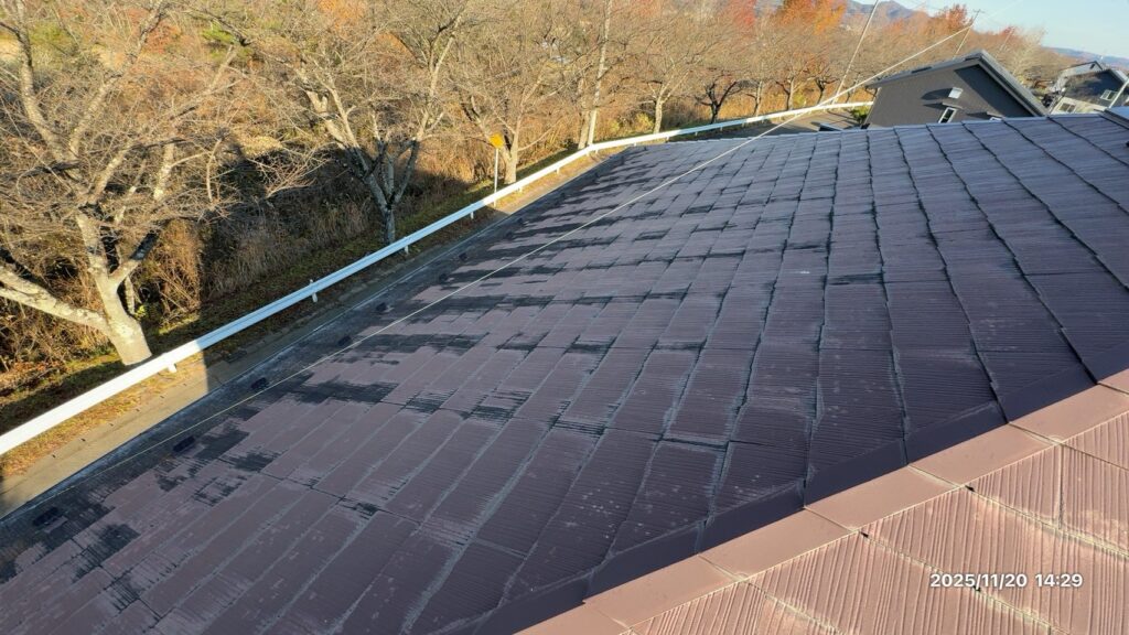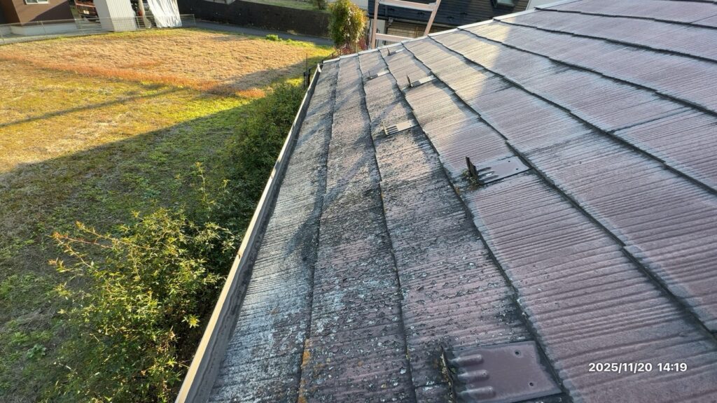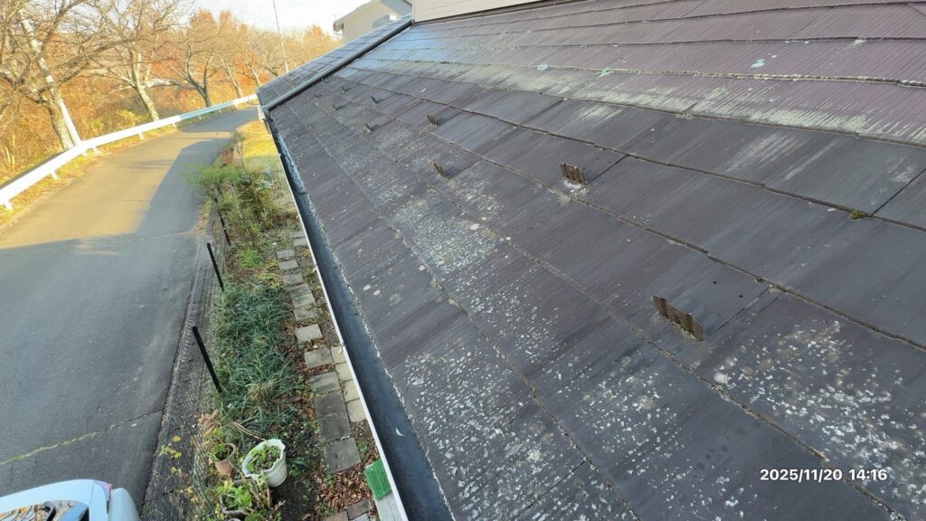 スレート屋根材そのものの経年劣化が進行 表面の防水性能が低下 下地が弱っている箇所も確認
