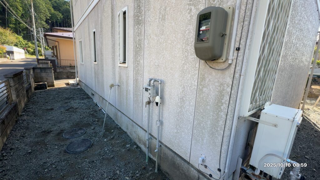 外壁はチョーキングが始まり、防水性能の低下が見られました。