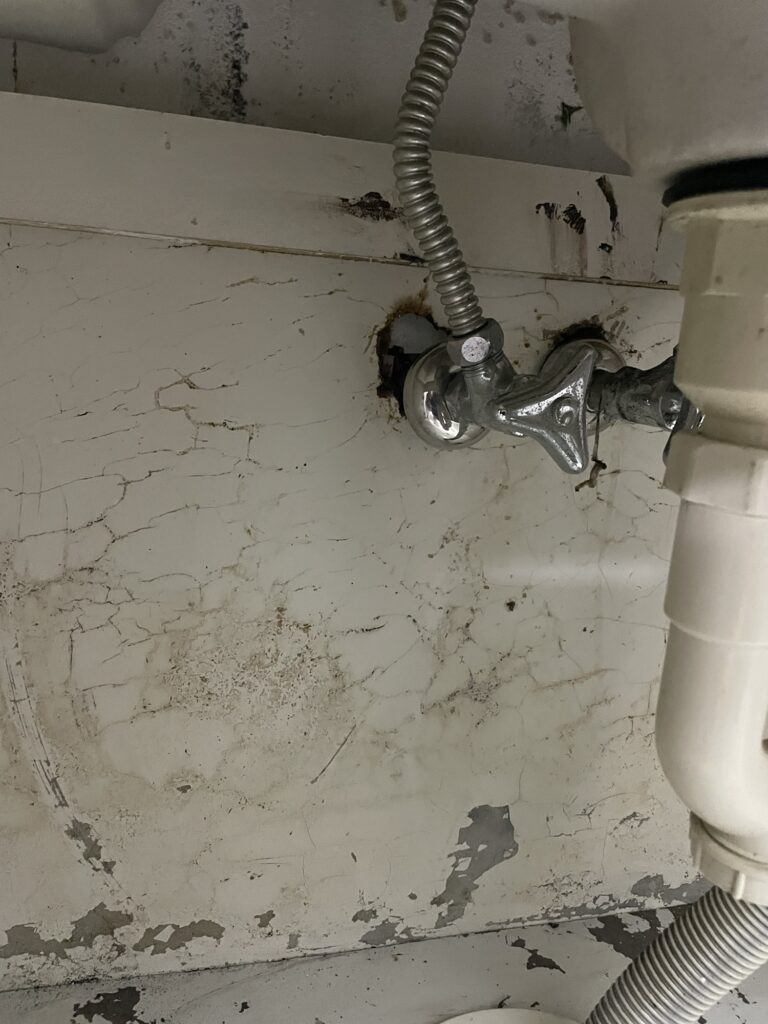 • 洗面台下収納部の板が腐食・カビ発生
