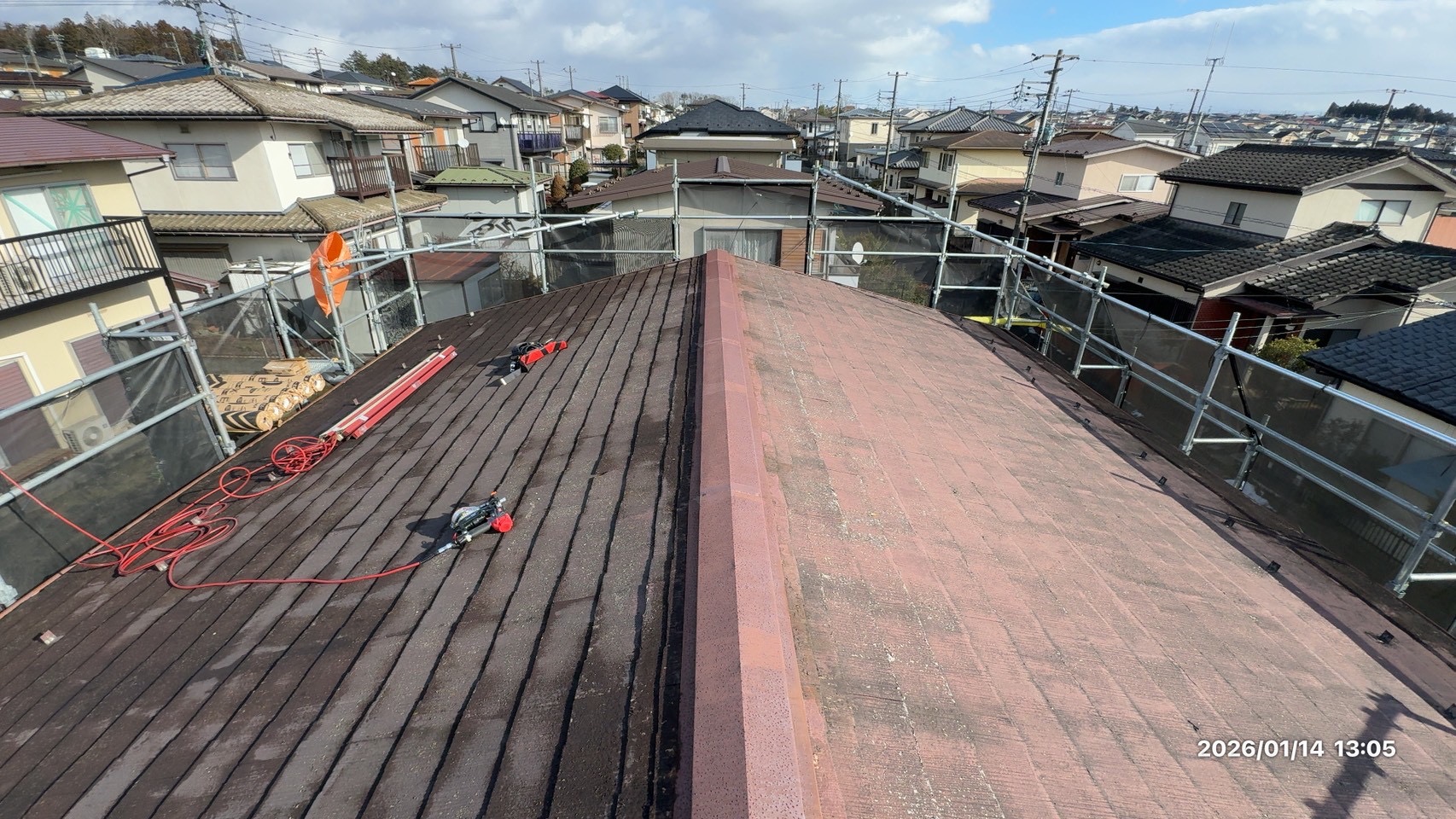 | 工事内容 | 足場・屋根カバー工法 |