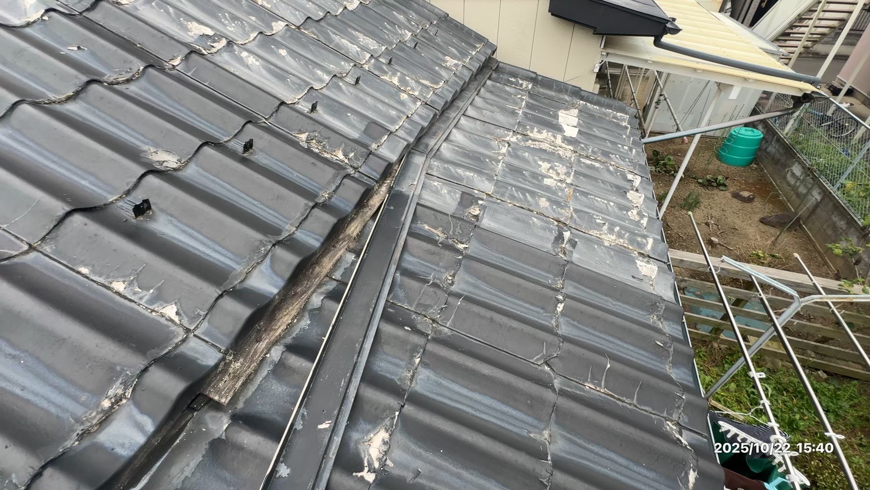 工事内容 足場工事・既存材撤去・下地組み・GL鋼板葺き替え